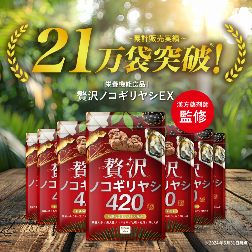 | 2位 | 贅沢ノコギリヤシ420 | ノコギリヤシ420mg・高齢ニンジン抽出物。牡蠣抽出物等 | 1,768円 | ★★★★☆ |